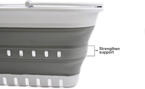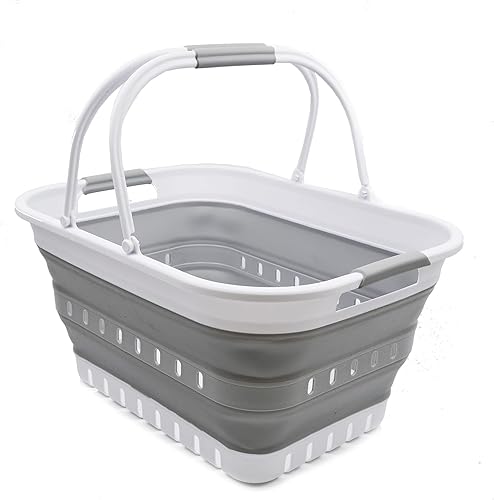 SAMMART Baignoire pliable avec poignée - Panier de pique-nique portable - Sac de courses pliable - Boîte de rangement peu encombrante (blanc/gris, 1)