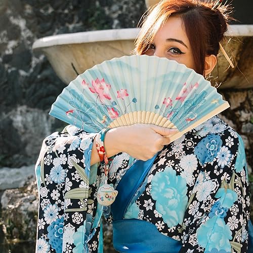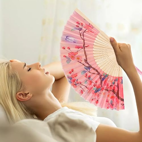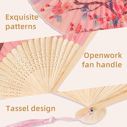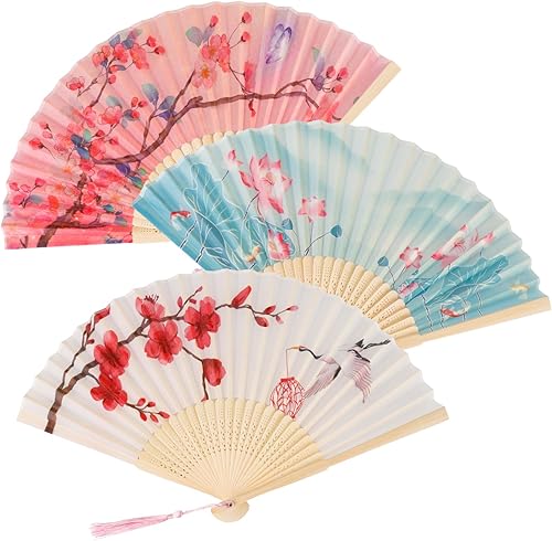 BigKego Lot de 3 éventails pliants orientaux en bambou - Éventail creux - Pour fans de pliage - Avec pompon - Pour décoration murale - Cadeaux de mariage - Fête d'été