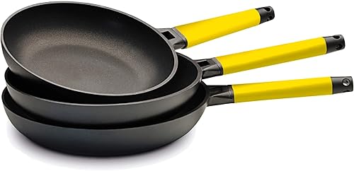 Castey - Lot de 3 poêles vitro-gaz avec manche jaune 20-24-28 cm