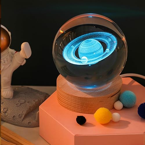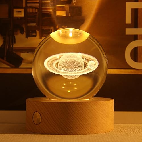 Excerando Cristal Système Solaire - systeme Solaire Enfant avec la Base de Lampe LED,Clair 80mm Cristal Boule pour Maison et Decoration,Cadeau ami,Cadeau pour Les Enfants et Cadeau Petit ami