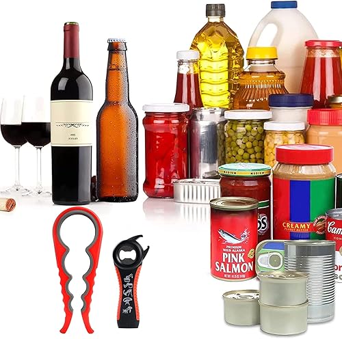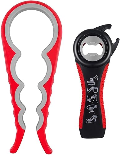 Lot de 2 ouvre-boîtes 5 en 1 avec bouchon, ouvre-bocal à visser et ouvre-bocal 4 en 1, idéal pour les enfants, les personnes âgées, les mains arthritiques