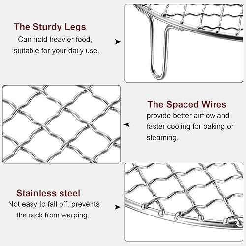 sourcing map Grille de cuisson ronde de 12,7 cm en acier inoxydable avec pieds de 50 mm pour cuisson à la vapeur, barbecue