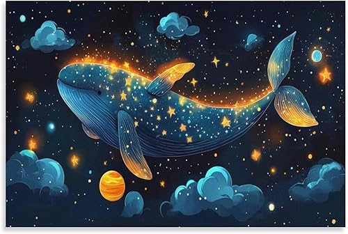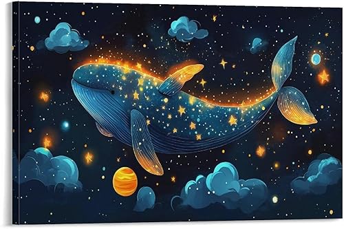 FELASBUID Baleine bleue Impression Sur Toile Murale Peinture Tableaux animaux Art Moderne Toile Ferme Moderne 16x24inch(40x60cm)