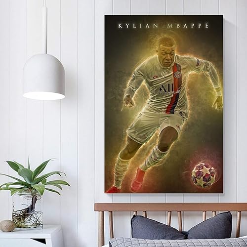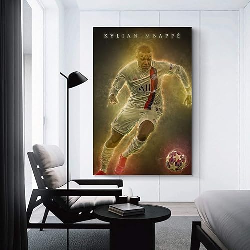 ASFDA Poster mural décoratif sur toile pour salon, chambre à coucher - Joueur de football Kylian Mbappe - 40 x 60 cm