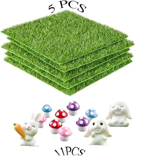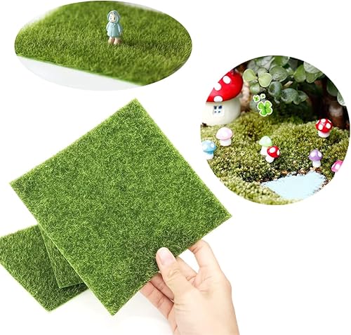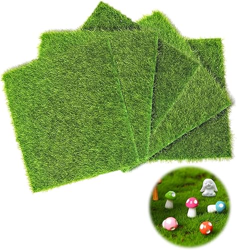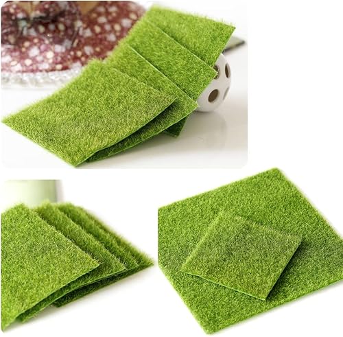Dzsomt Tapis de Pelouse Verte Artificielle 5 Pièces Faux Gazon Mini Simulation Gazons Tapis d'herbe Artificielle Carré Fausse Pelouse pour Micro Paysage Jardin Décoration,15 x 15cm