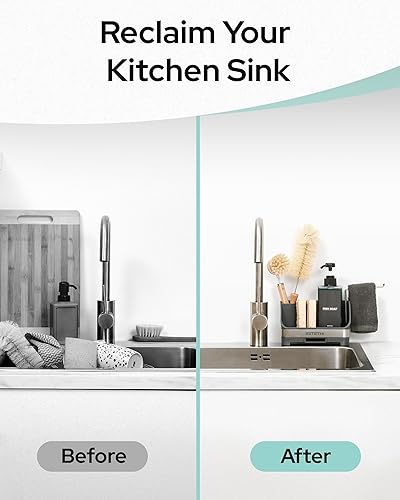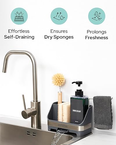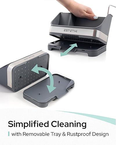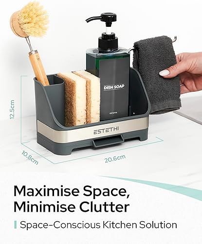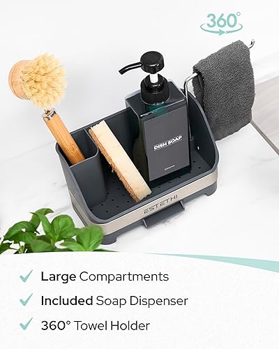 ESTETHI Organisateur Évier Cuisine avec Distributeur de Savon – Support Rangement Évier avec Égouttoir, Range Éponge et Porte-Chiffon Pivotant