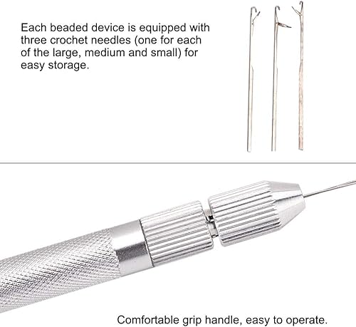 Aiguille de Boucle de Traction, Micro Anneaux Liens Perles Aiguille Enfileur Fil Tirant Crochet Outil D'extension de Cheveux 3 Pièces Tirant Boucleur 1 Pièces Poignée 1 Pièces Fil Perlé pour Extension