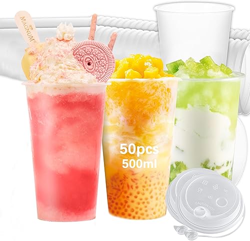 Xsdgi Lot de 50 gobelets en plastique de 0,5 l, transparents, en polypropylène, légers et incassables, pour boissons et événements