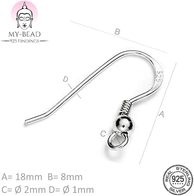 My-Bead 5 paires Fermoirs de Boucles d'Oreilles 18mm Argent 925 avec Boule Qualité par bijoutier DIY