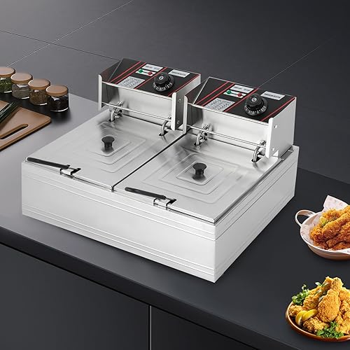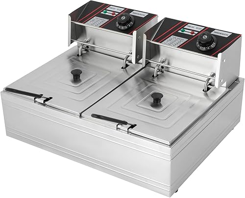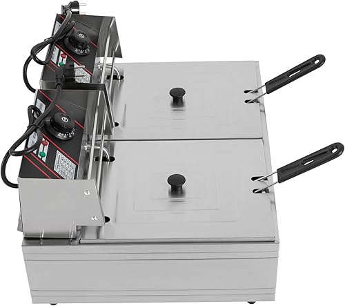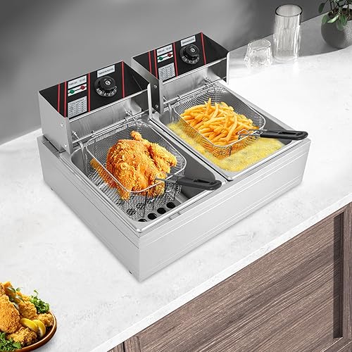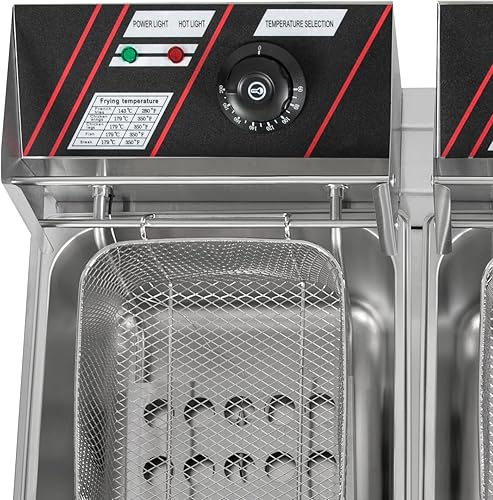 2 friteuse double en acier inoxydable de 6 l, 220 V, 5000 W, friteuse électrique avec niveau de chauffage réglable, 2 paniers et couvercle de friteuse pour usage commercial et domestique