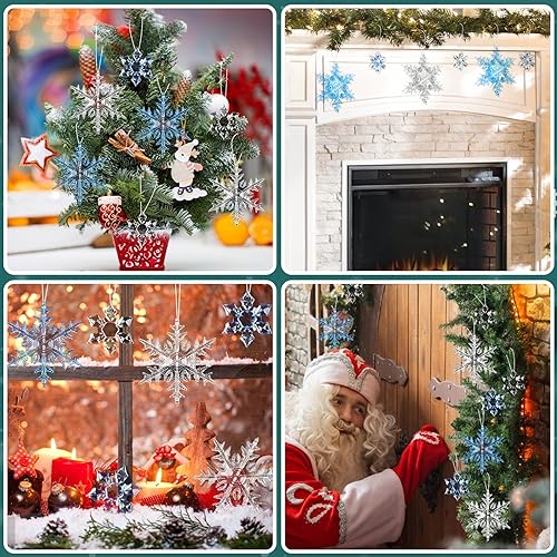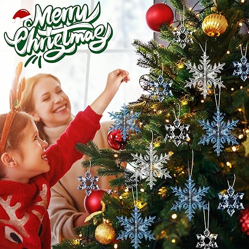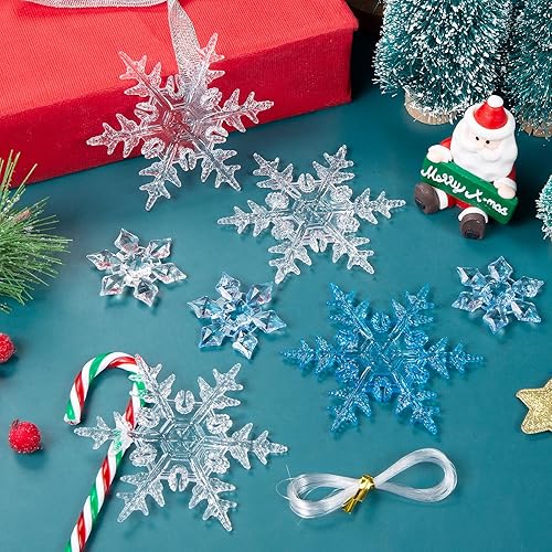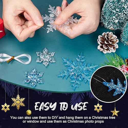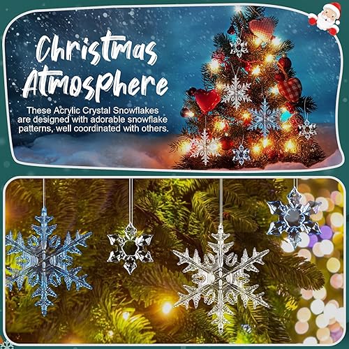 30 Pièces Acrylique Flocons De Neige, Ornements en Cristal pour Décorations De Noël avec Ligne De Cristal pour Fenêtres, Cheminée, Sapin et Hiver