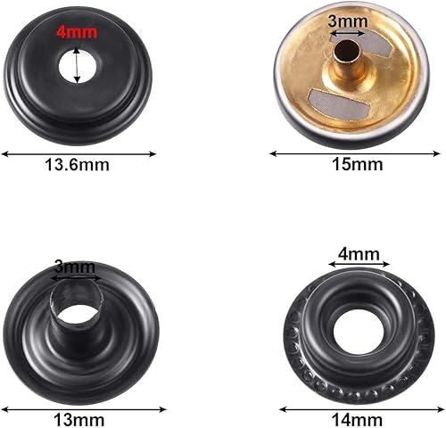 BetterJonny 220PCS Pression Bouton Fixation, 15 mm Boutons-Pression en Laiton+Acier Inoxydable Set Bouton Pression Cuir avec Pince et 3 Outils de Réglage pour Bateau Toile Sac Cuir Artisanat, Noir