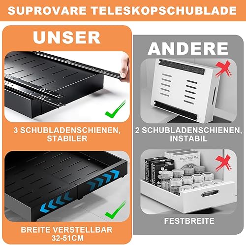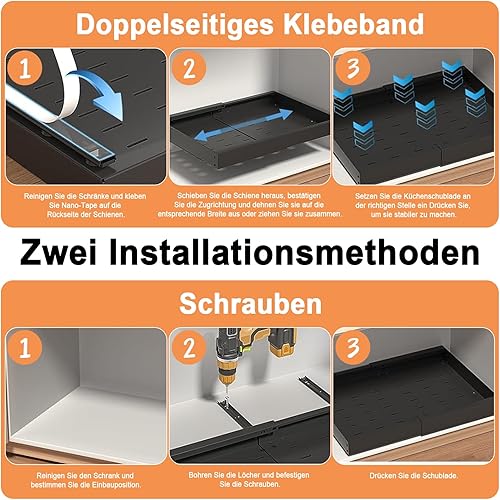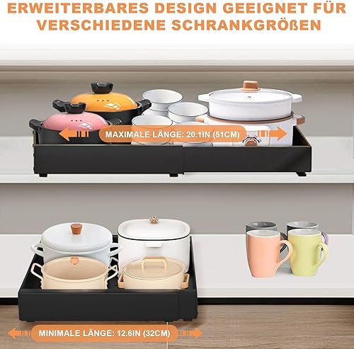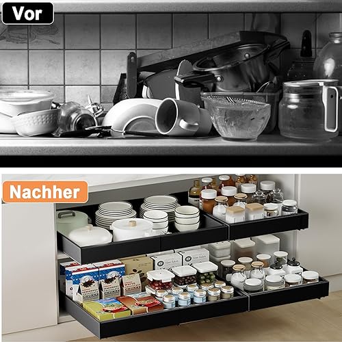 2 PCS Tiroir Coulissant, Bac Coulissant Placard Cuisine, Organisateur D'Armoires De Cuisine Pour Armoires de Cuisine, Organisateur de Tiroirs, avec nanofilm adhésif, Aucun PerçAge, Noir, (32cm à 51cm)