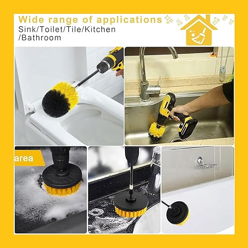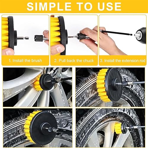 Brosse Perceuse, Brosse de Nettoyage Perceuse, Brosse Perceuse Électrique, 3 Pièces Perceuse Nettoyage Kit, Nettoyage Voiture Brosse,pour Jantes Carrelage Tapis Baignoire Cuisine Toilettes Sol