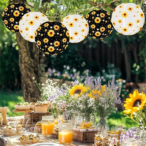YUGSHNKFC Lot de 6 lampes de fête en forme de tournesol accrocheur de 24 cm à suspendre pour porche et arrière-cour