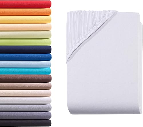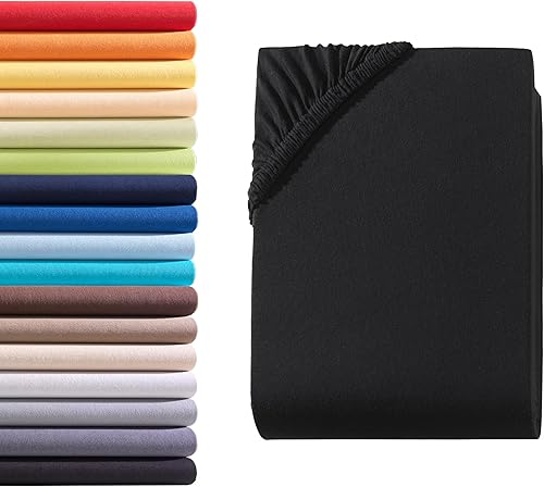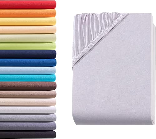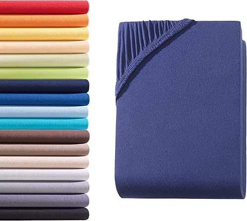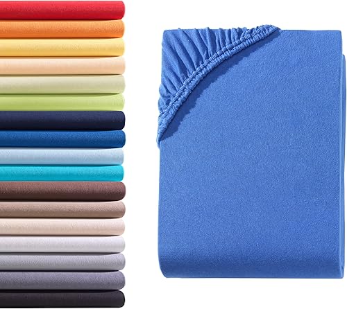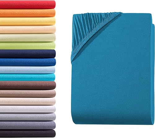 Drap de lit Drap-housse jusqu'à 23 cm de hauteur de barre | Drap-housse Jersey 100% coton | 90-100x200 cm bleu clair | ÖKO-TEX STANDARD | Plusieurs tailles et couleurs disponibles