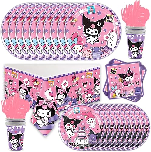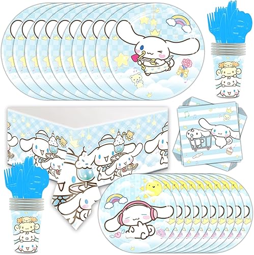 Roffatide 81 set mignon Cinnamoroll anime Party assiettes, tasses et serviettes en papier pour fille garçon anniversaire kawaii partie fournitures anime fille anniversaire décorations pour 10 invités