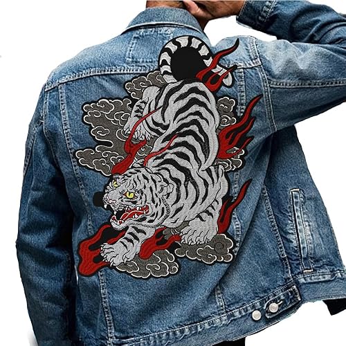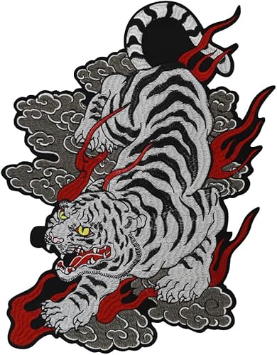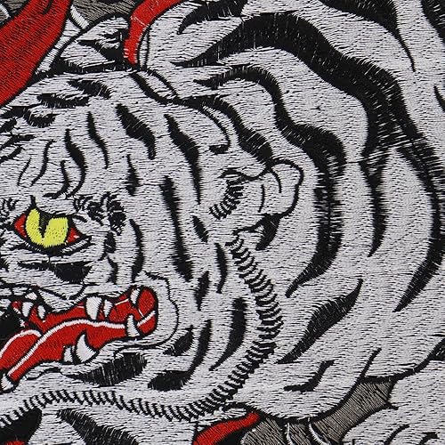 Grand écusson tigre blanc rayé rugissant brodé thermocollant