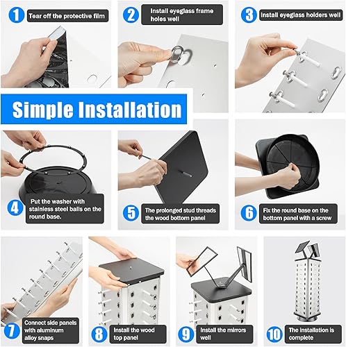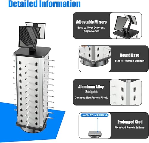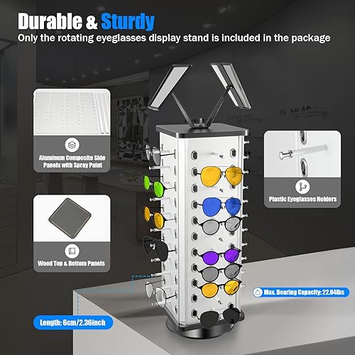 LoyaltyClivia Lot de 44 paires de lunettes de soleil rotatives à 360° en métal - Support et miroir - Présentoir carré pour exposition, magasin, décoration de maison