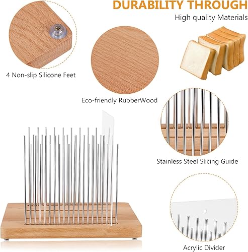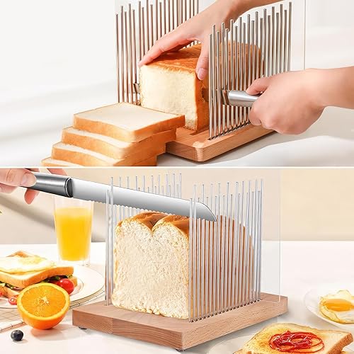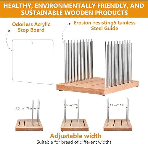 Trancheuse à pain en acier inoxydable pour pain fait maison, guide de tranchage de pain avec largeur réglable, trancheuse à pain, outil de tranchage de pain pour couper le pain, les bagels, les