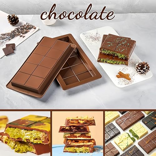 QOMJUFA Moule Tablette Chocolat Profond, 2PCS Moule à Chocolat Dubai, Chocolat Moule Chocolat Profond en Silicone pour Pralines et Bonbons au Chocolat DIY, sans BPA, de -40°C à 230°C