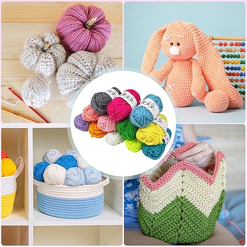 Fousenuk 12 Couleurs Laine à Tricoter, 10g/20m Crochet Coton Pelote Grosse Maille Fils, Epaisse Acrylique Multicolore, Arylique Ultra Doux pour Tissage à la Main
