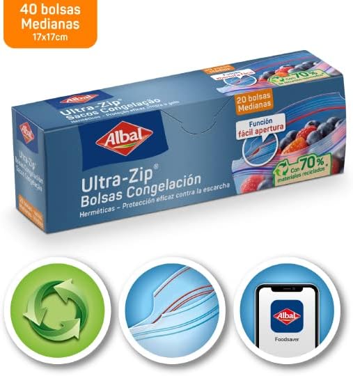 Albal - 20 Sacs congélation Ultra Zip 17cm x 17cm petits