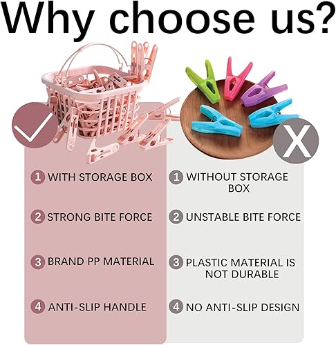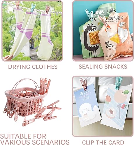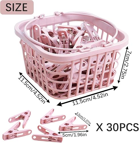 Lot de 30 Pinces à Linge Rose, avec Panier de Rangement, Pinces Antigel pour Corde à Linge et Étendoir ,Accessoire Ménager Pratique