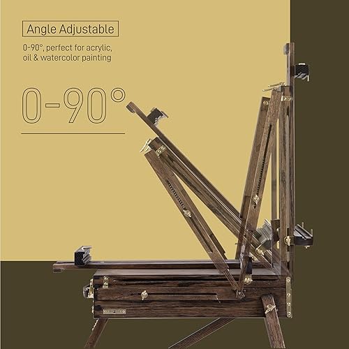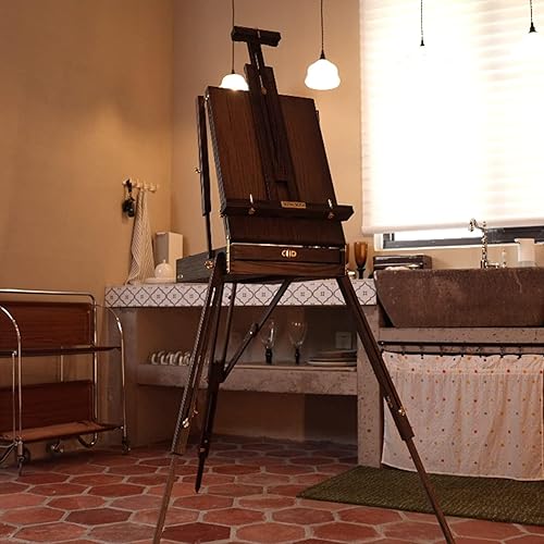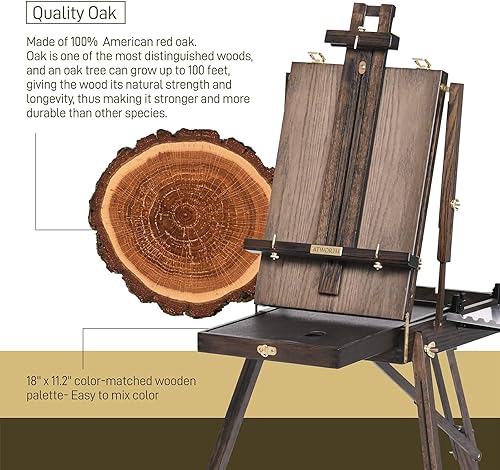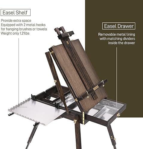 ATWORTH Chevalet Bois de Luxe, Chêne Rouge Américain Massif avec Étagère et Tiroir Doublé en Métal, Trépied Portable en Bois, Peut Contenir des Toiles Jusqu'à 86,3 cm, Finition Noyer Gris