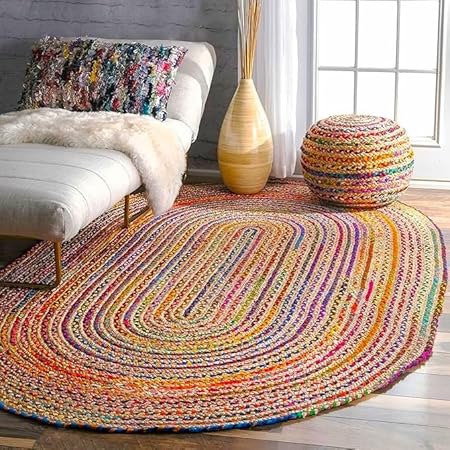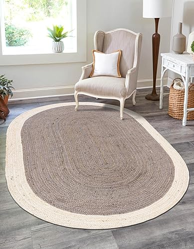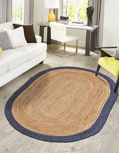 Aizza Trends Tapis indien ovale tressé à la main en jute naturelle pour chambre à coucher - 90 x 150 cm