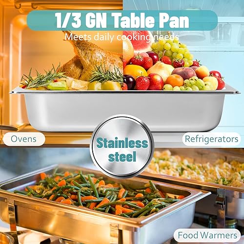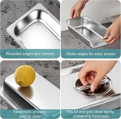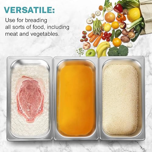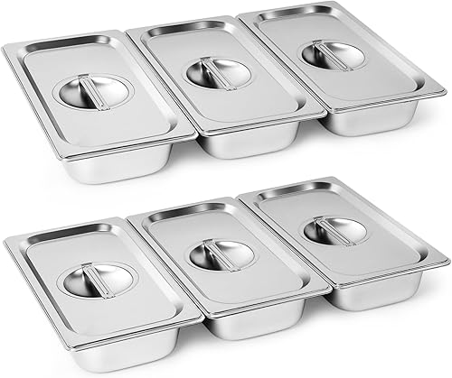 Cokaca Lot de 6 bols à paner avec couvercle en acier inoxydable GN 1/3 - 32,5 x 17,5 x 6,5 cm - Récipient rectangulaire en métal - Idéal pour escalopes, viande, poisson