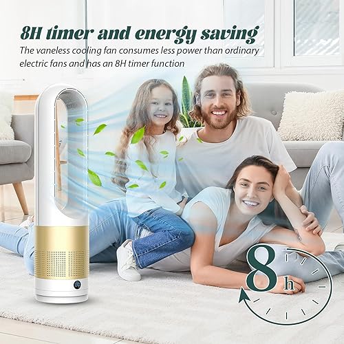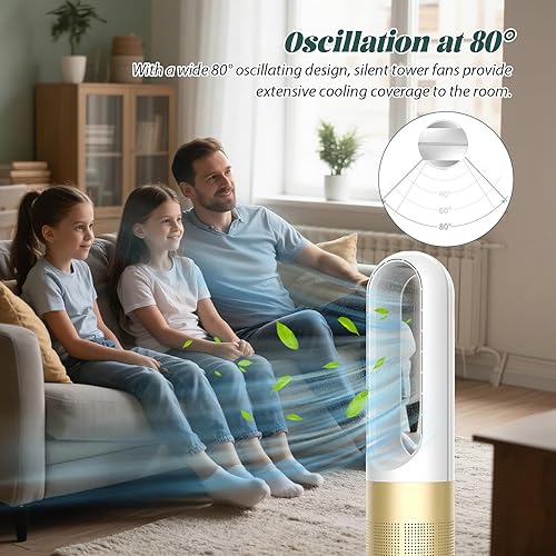 18' Ventilateur Sans Pale, Ventilateur Colonne Silencieux, Ventilateur De Sol Oscillant à 80, Avec Minuterie 8 Heures, TéLéCommande, éConomie D'éNergie, Pour Chambre à Coucher, Bureau (Couleur or)