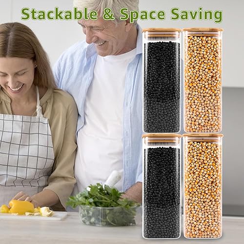 JMIATRY Lot de 4 Bocaux en Verre 2000 ml, Bocaux en Verre Hermétique, Bocal en Verre avec couvercle pour Céréales, Cornflakes, Sucre, Spaghetti