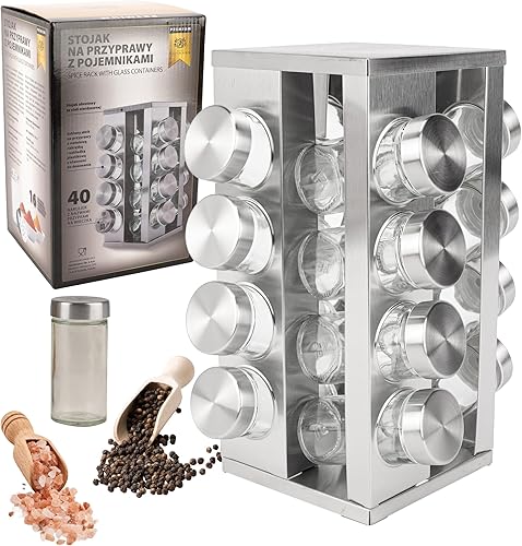 KARL HAUSMANN Tourniquet à Épices 20 Pots - Carrousel à Épices Rotatif - Porte Épices Cuisine - Rangement Épices - Support à Épices - Tour a Epices - Range Épices Pratique - Tourniquet a Epices