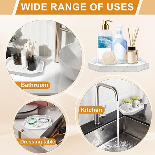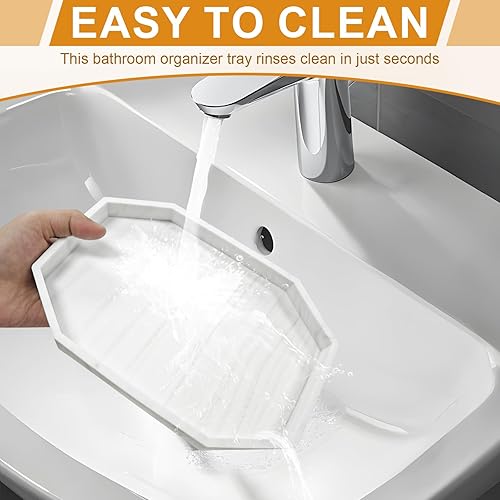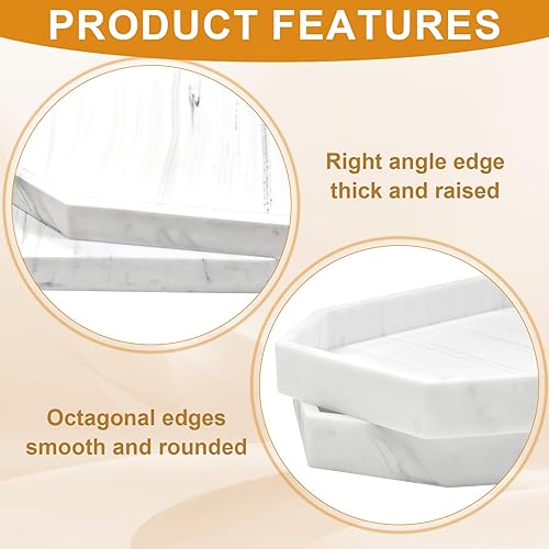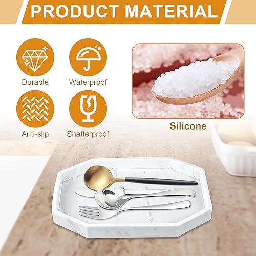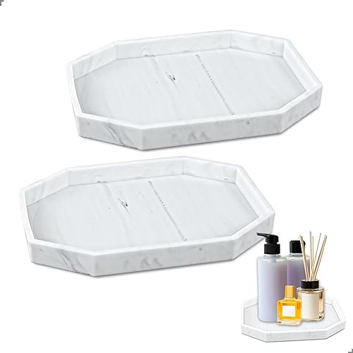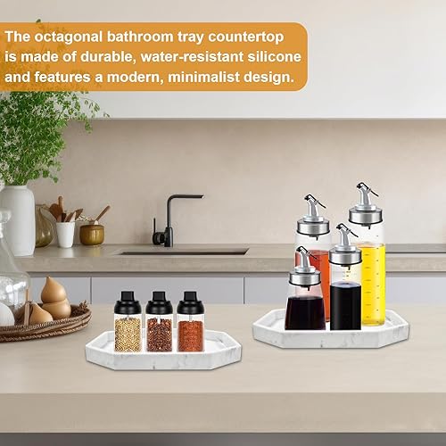 2 PièCes Plateau Blanc Petit Plateau Decoratif, Octogone Silicone Plateau Salle de Bain avec Mutifonctionnel Porte Bijoux Rangement pour Le Salon, Chambre, Lavabo, Baignoire et L'éVier de Cuisine