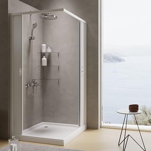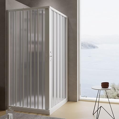 Cabine de douche à soufflet en PVC 80 x 80 cm H 185 mod. Aster avec ouverture centrale