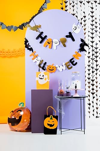 Folat 23872 Feuille de rideau de porte Chauves-souris noires BoOo-2 x 1 mètre fête, Hantée Halloween Decorations, Soirée à Thème: Squelette, Fantôme Citrouille, La Sorcière, Multicolore