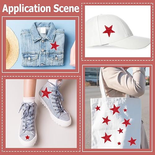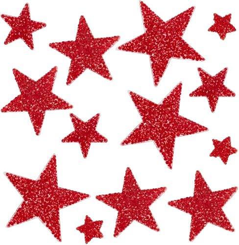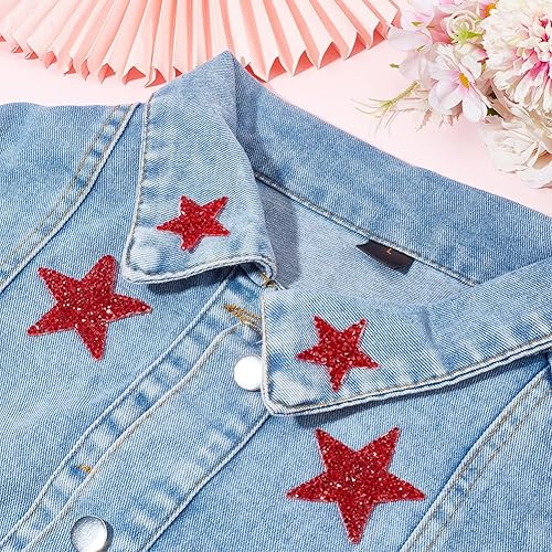 GORGECRAFT 24 Patch Thermocollant en Forme D'Étoile Strass en Résine Paillettes Rouges Appliqué Colle Chaude Brodé pour Vêtements Jeans Sacs Chapeaux Vestes Décoration Couture Artisanat