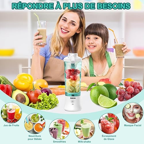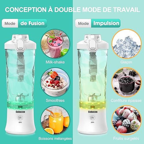 Cobocen Mixeur Portable, Mixeur Smoothie pour Shakes et Smoothies, Mini Blender avec Type-C Rechargeable et 6 Lames, pour Cuisine Bureau Voyage