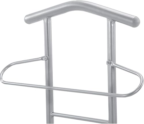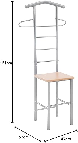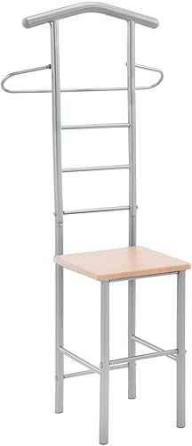 IDIMEX Valet de Chambre JIVO chevalet de Nuit Portant pour vêtements, Structure en métal argenté avec Tablette en MDF Couleur hêtre