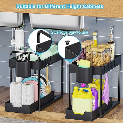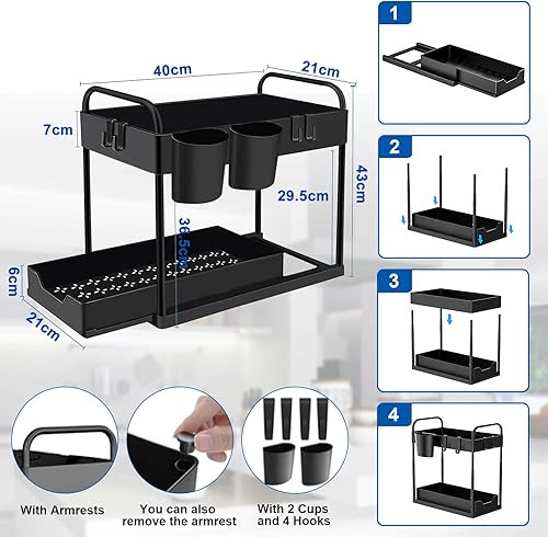 Wholede Rangement sous Evier Niveaux, Rangement et Organisation de Cuisine avec 4 Crochets et 2 Gobelet Suspendu pour Salle de Bain/Cuisine