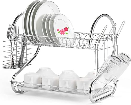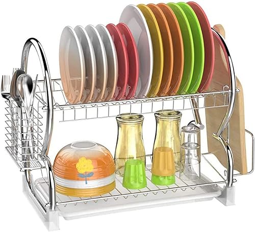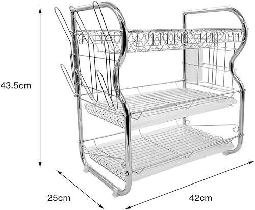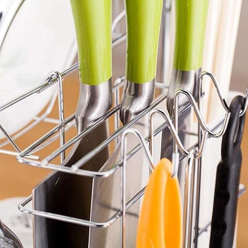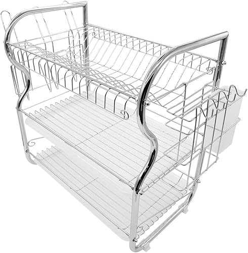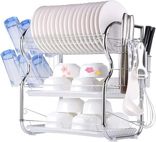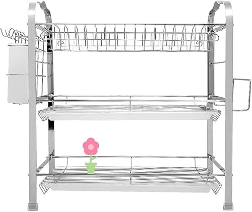 Égouttoir Vaisselle INOX À 3 Niveaux,Egoutoire Vaisselle Cuisine avec Porte-Gobelet et Couteau et Fourchette Porte-Baguettes,Étagère à Couverts pour Égoutter et Ranger La Vaisselle 42 * 25 * 49 cm