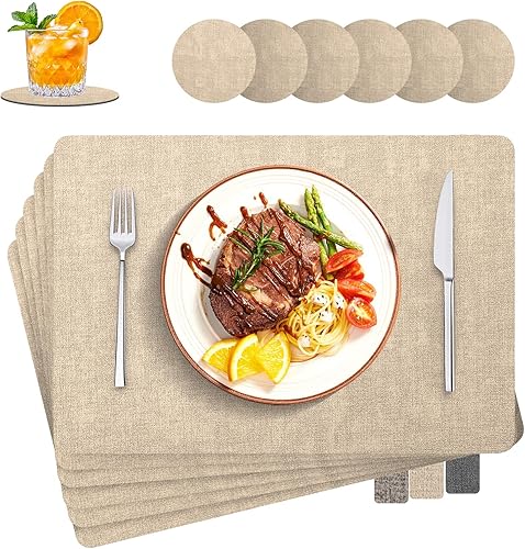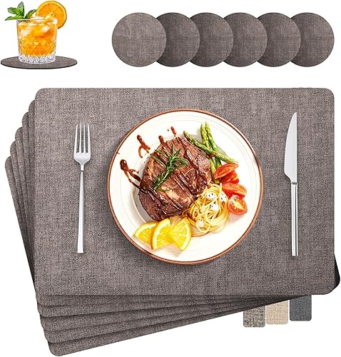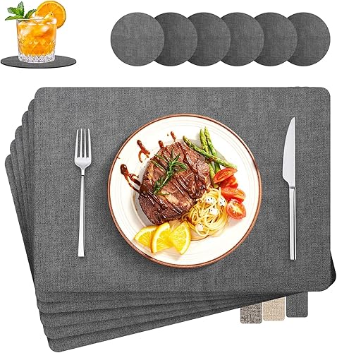 LUOJINYI Lot de 6 sets de table en similicuir Wahale Heat Reitat 30 x 43 cm NoSli Set de table pour maison, cuisine, restaurant, hôtel, gris