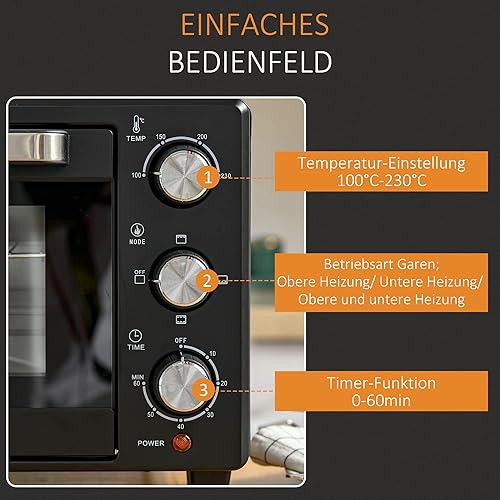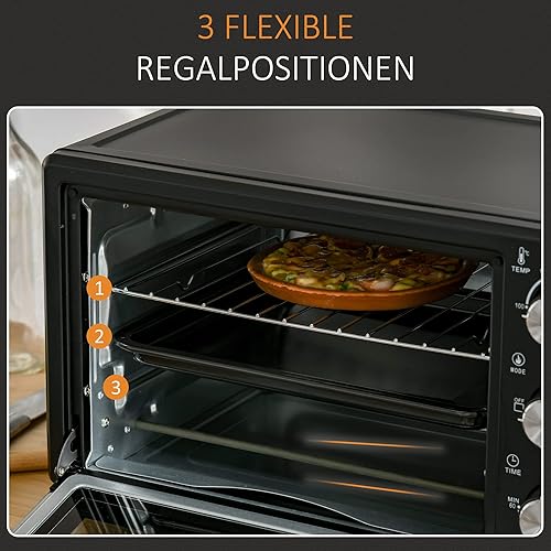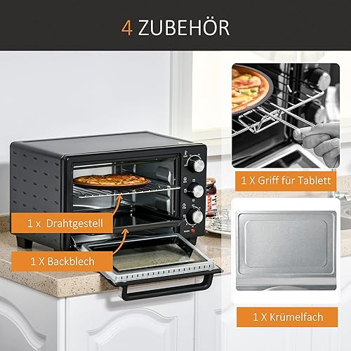HOMCOM Mini-four 21L avec 1 support fil et 1 plaque de cuisson 3 modes de cuisson 100 °C-230 °C température réglable Mini-four 1400W four à pizza avec grille acier inoxydable verre noir