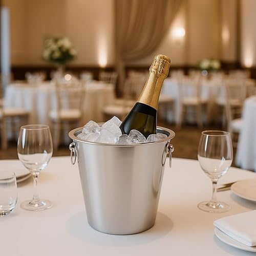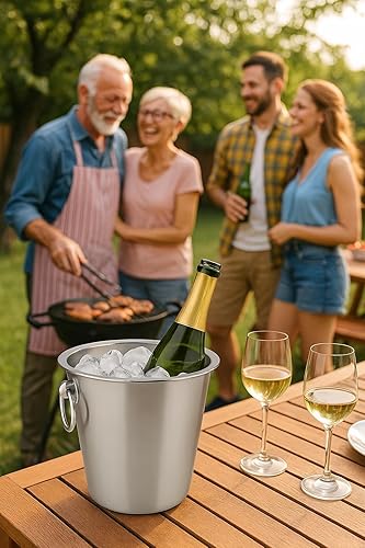 Bambelaa! Seau à champagne en acier inoxydable brillant avec poignées annulaires - Seau à vin - Seau à champagne - Argenté (diamètre : environ 22 cm)