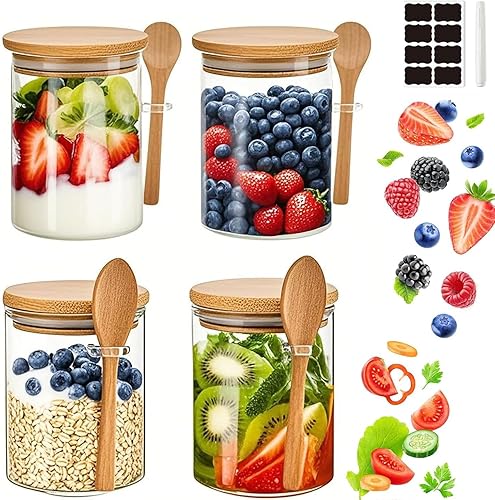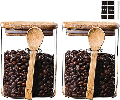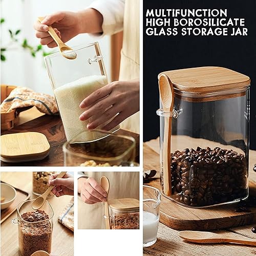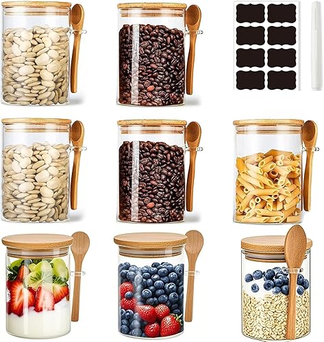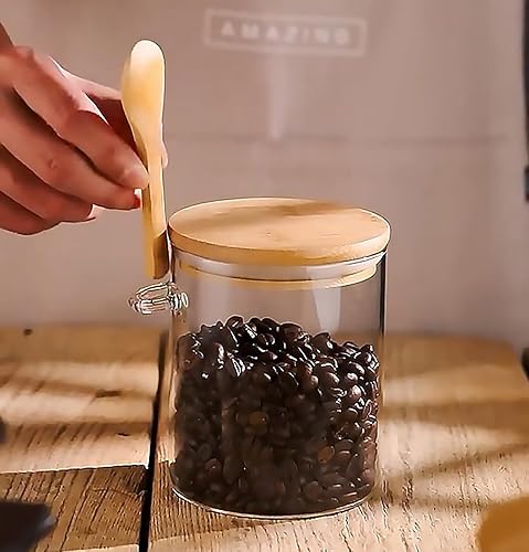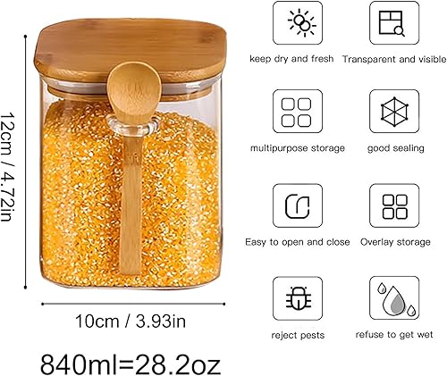 NEEMOSI Bocal en Verre avec Couvercle,540ML Pot a Epices en Verre avec Cuillère et Couvercle, Idéaux pour Conserver les Produits Secs, Les épices, Le thé, Le café, Les noix, Les graines, etc