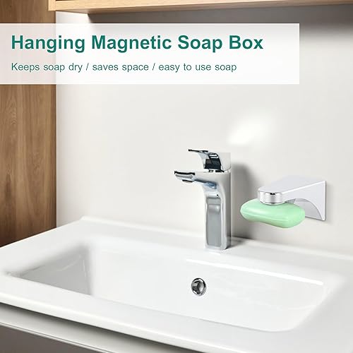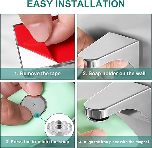 2 Porte-Savon Magnétique Adhésif Mural pour Baignoire de Douche et Evier de Cuisine Antirouille, Porte-Savon Aimanté en Acier Inoxydable Argent, pour Salle de Bain Cuisine Evier