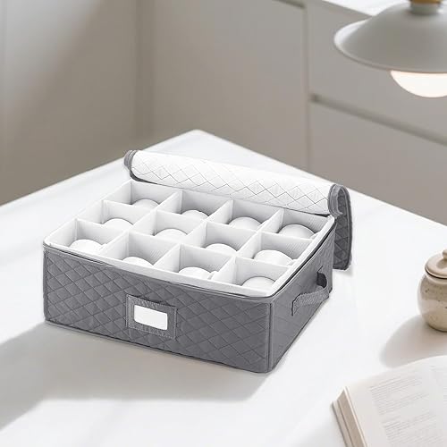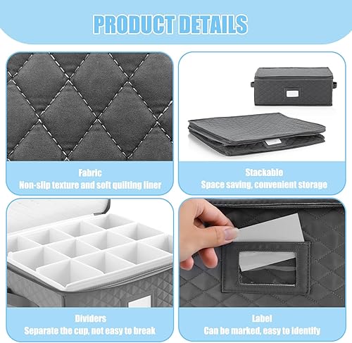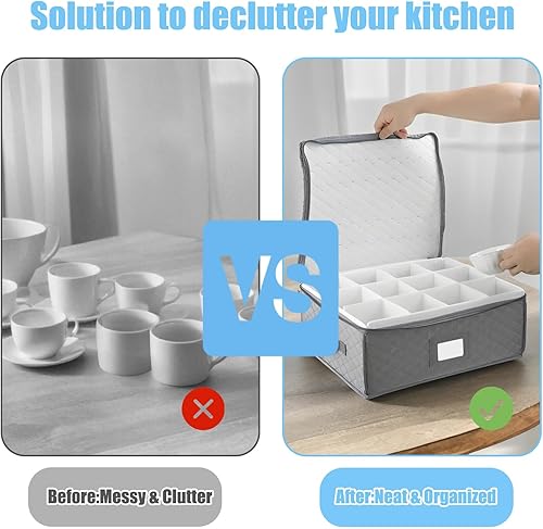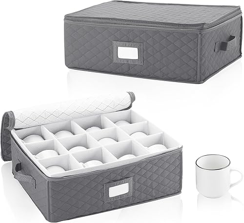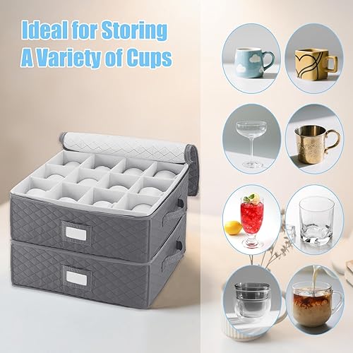 RETON Lot de 2 boîtes de rangement pour tasses à café avec compartiments - Avec couvercles à fermeture éclair - Mallette de rangement rigide et empilable - Pour café, tasse à thé, bar