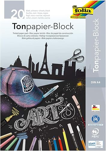 Folia MAX BRINGMANN KG - 197 - Papier Dessin A4 140g/m Bloc de 20 feuilles Noir