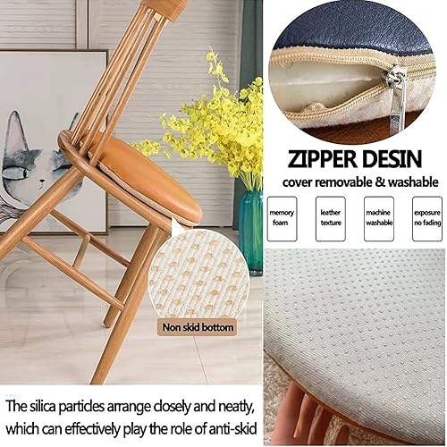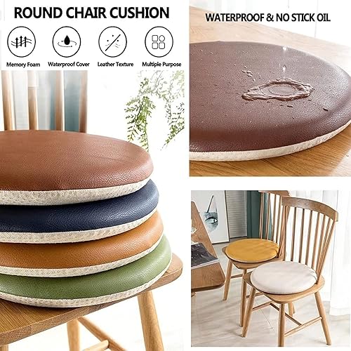 Galette de Chaise Mémoire de Forme,Coussin de Chaise Rond Imperméable en PU Cuir pour Intérieur ou Extérieur,Jardin,Cuisine,Bureau,Antidérapants,Épais Et Respirants Coussin(Size:28cm,Color:Gris clair)